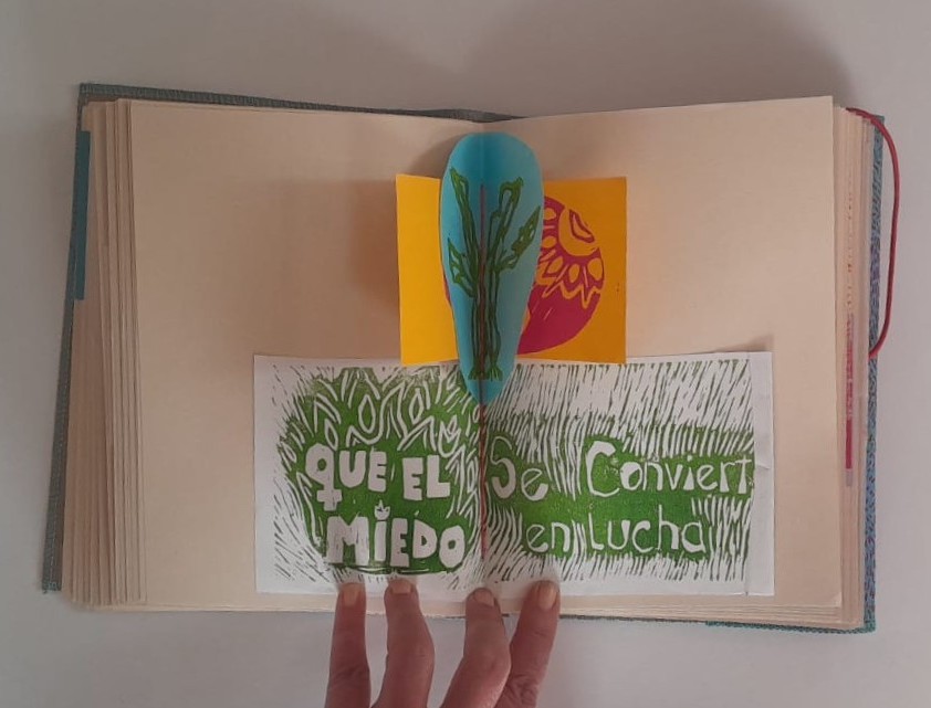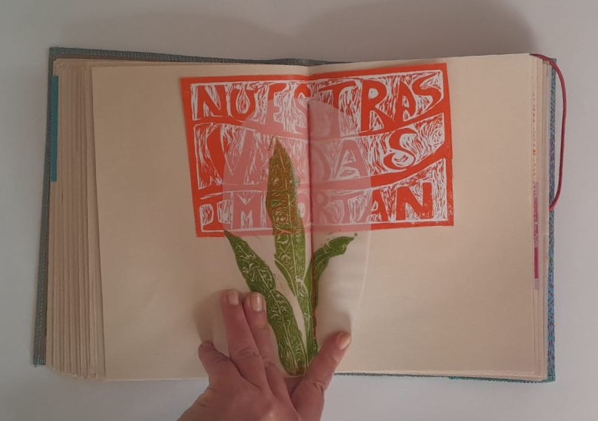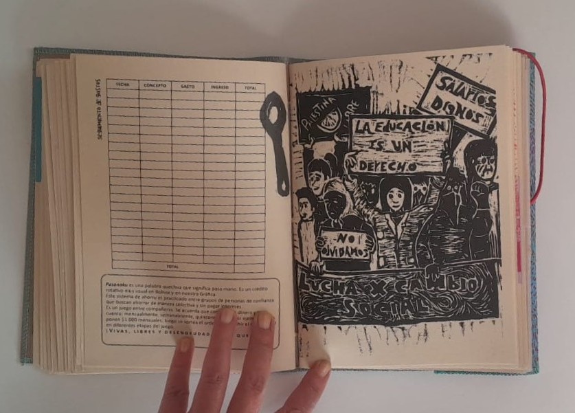 El oficio gráfico, la encuadernación artesanal y la difusión en redes y exposiciones internacionales son modos de habitar estos intersticios, de hacer visible lo invisible y de crear un contrapeso a las lógicas de explotación y dominio. No generamos un ingreso adicional, lo producido por las ventas lo reinvertimos para la compra de insumos