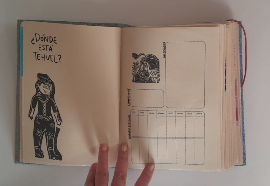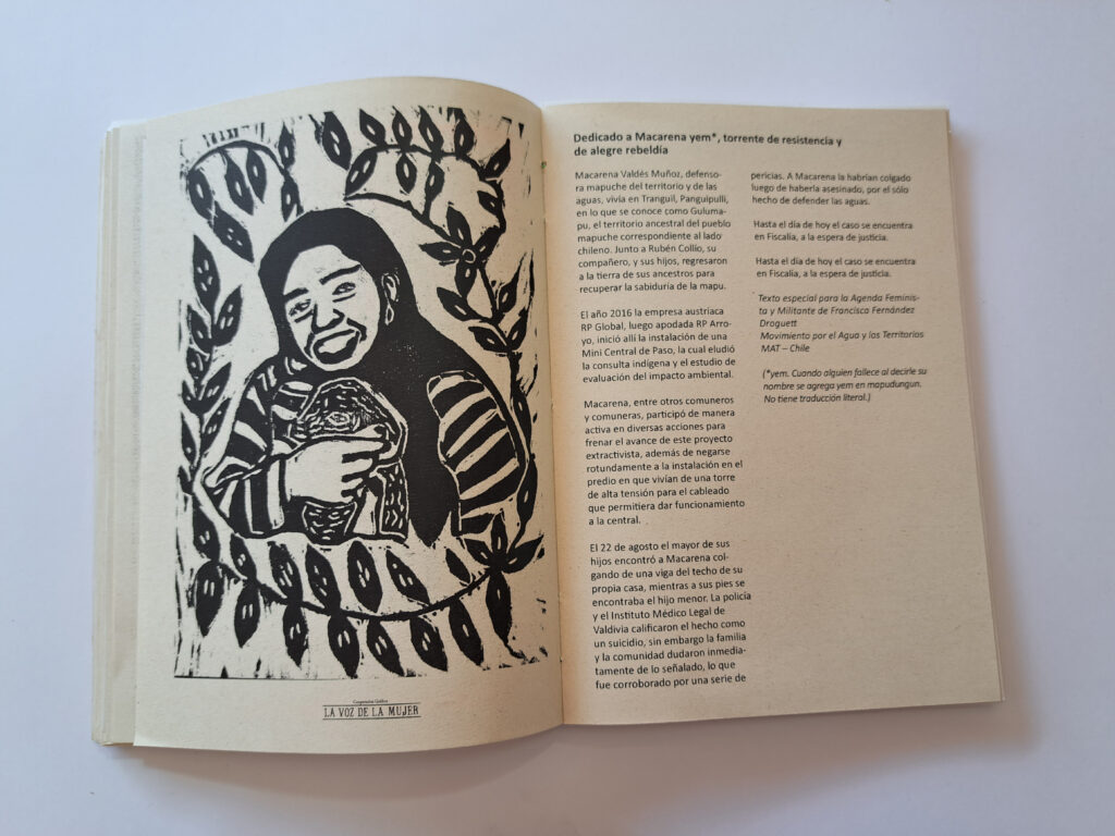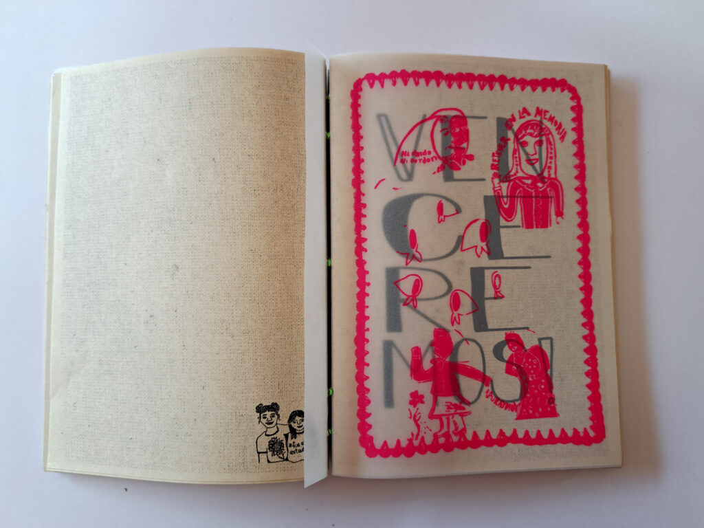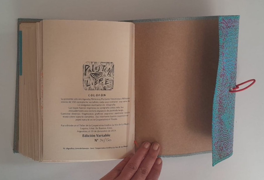 A partir de 2015 la Gráfica se convirtió en nuestro lugar de trabajo3. En 2016 comenzamos a editar todos los años, nuestra Agenda “Feminista y Militante”, y desde el 2018 agregamos el bordado a las estampas de xilografía en tela. Ello nos vinculó con nuestras ancestras, nuestras abuelas y nuestras infancias donde cada color, cada detalle, cada punto, cada puntada, fue una excusa para la charla íntima y colectiva.