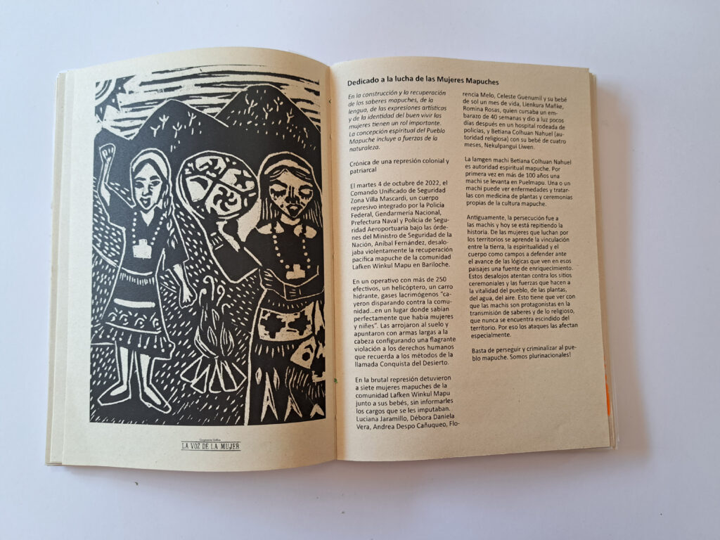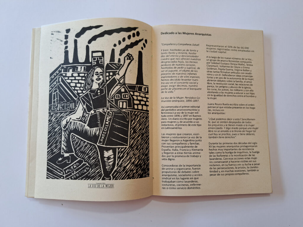 En nuestra construcción feminista de base, buscamos unir los hilos de la trama de las resistencias desde nuestra historia piquetera1, la de nuestras ancestras y las luchas populares atravesando fronteras. Por eso el nombre de nuestra Cooperativa Gráfica, es un homenaje a las mujeres que entre 1896 y 1897 editaron, en Buenos Aires y en Rosario, el periódico comunista anárquico La Voz de la Mujer.